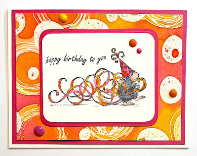 Your personalized stamped circle background is so fun and so fun for your house mouse image. Thanks for sharing your card with us at Double Trouble.